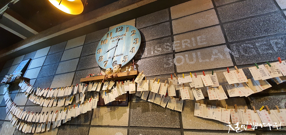 벽면에 이곳을 오가는 사람들이 남겨둔 포인트카드가 걸려있습니다.