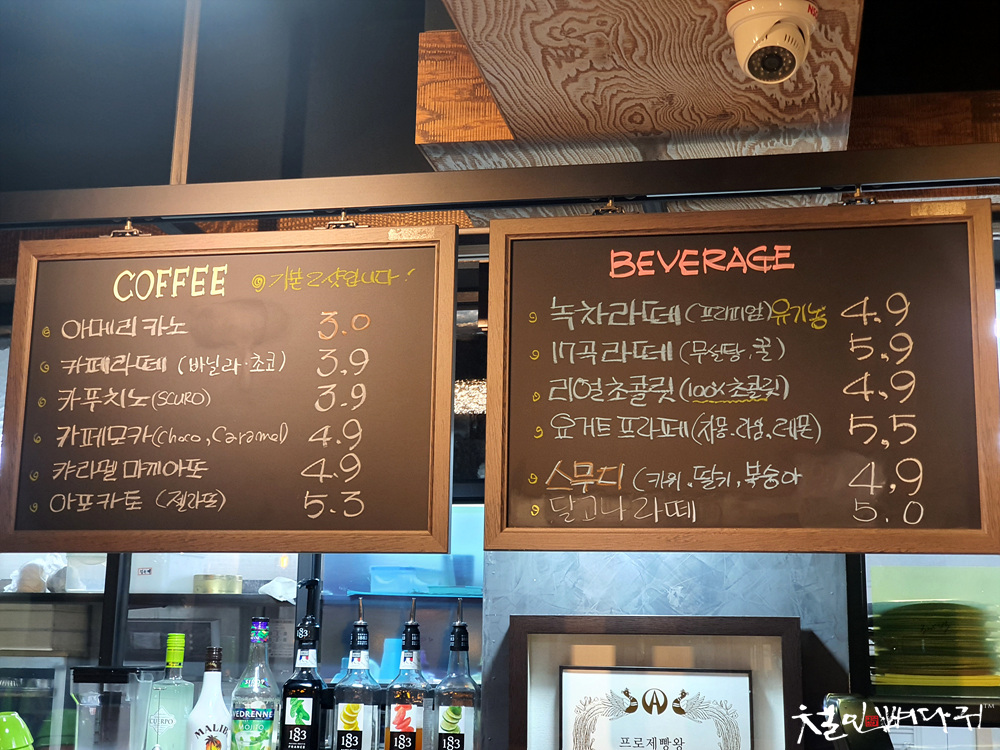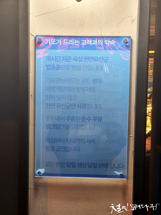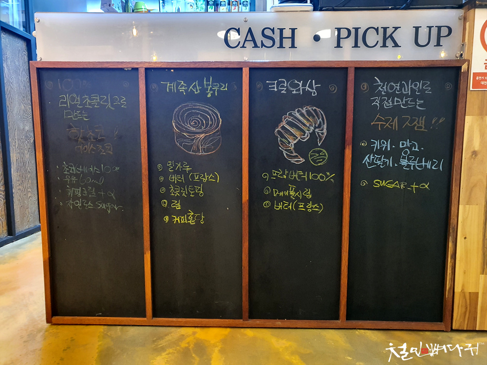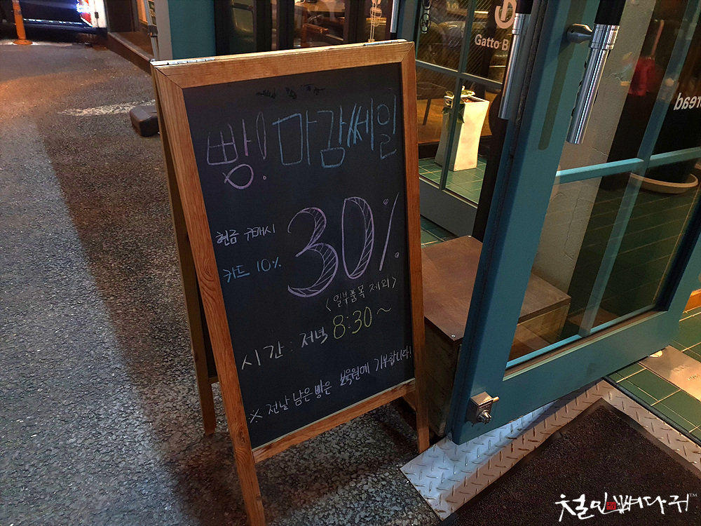카운터 아래에 분필로 그려놓은 이곳 가또브레드의 제품 특징을 읽어 볼 수 있습니다.