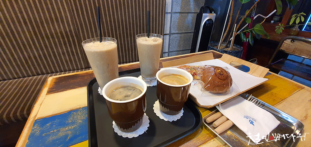 아기자기한 모습들로 꾸며진 공간에 커피나 곡차, 빵등을 같이 먹을 수 있습니다.