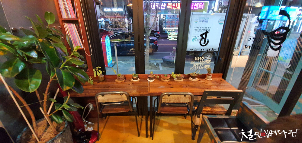 홀 중앙에 있는 푸른색의 테이블이 자꾸 눈길이 갈만큼 이뻐보이기도 합니다.