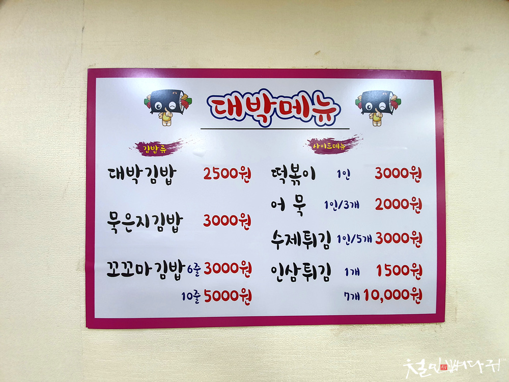 이곳에서 대박김밥식당은 3분정도 걸어가야 합니다.