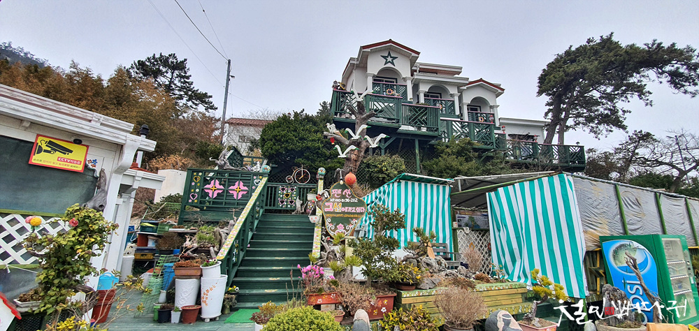 대장도에 있는 펜션인지, 카페인지, 식당인지 외국의 건물 같은 집들도 보이고,