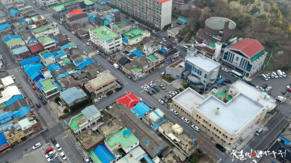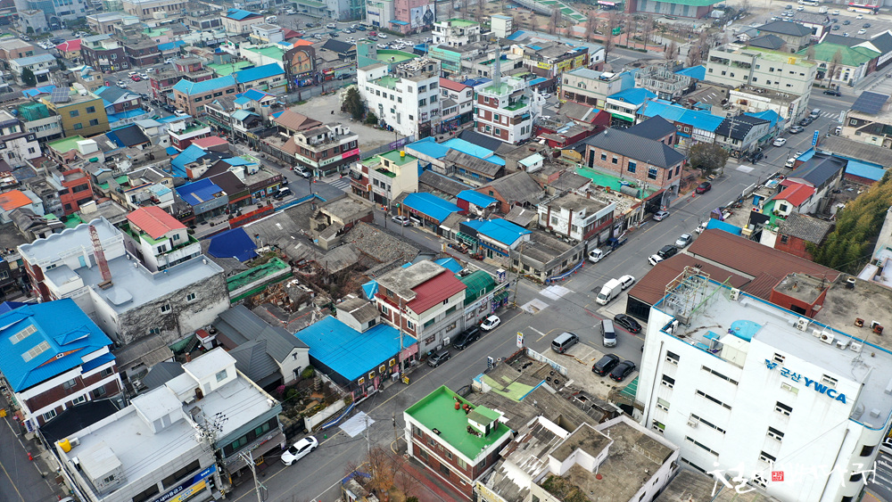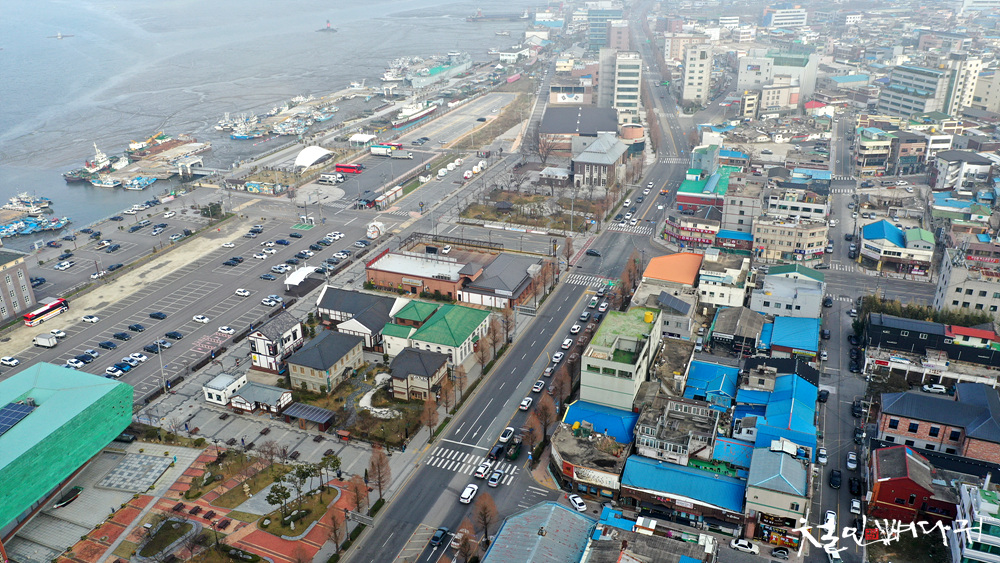 드론을 이륙한 장소는 영화동이었고, 주변 도시풍경입니다. 옛 도시의 느낌을 그대로 간직한 체 내부적으로 변화를 하고 있는 군산이라 좋아합니다. 하늘에서 보는 도시는 큰 변화를 느낄 수 없지만, 땅에서 걸어서 보는 군산은 새롭게 단장하고 오픈한 상점들이나 문화적 가치를 갖고 보수된 건물들이 생겨나고, 그로 인해 관광객들이 끊임없이 찾아오는 곳이 되었습니다. 또, 조금 떨어진 근대문화 거리들에는 월명동도 있습니다.