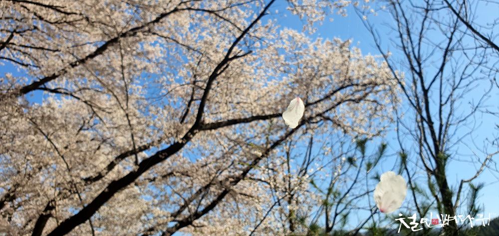 공중에 떨어지는 벚꽃도 캐취 하고,