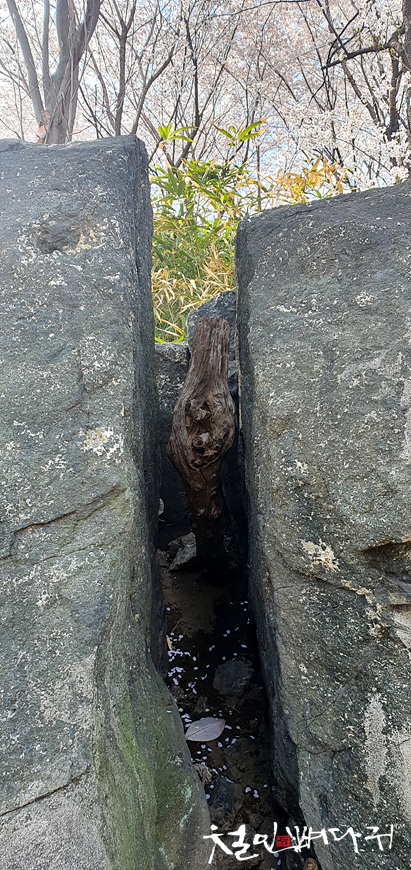 커다란 바위 사이에 나무가 자라고 있는 것도 봤습니다.