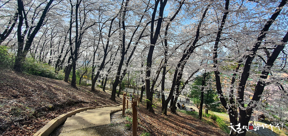 테미공원 정문에서 곧게 올라가는 길 주변도 전부