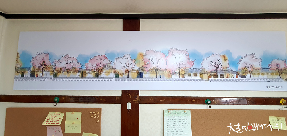 벚꽃 그림이 파노라마로 걸려있습니다.