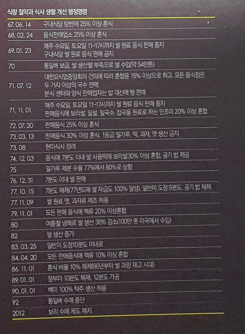 우리의 주식은 전통적으로 쌀이다. 기후 특성상 이모작으로 보리를 재배하여 왔고, 밀은 일부지역에섬만 재배되었을 뿐이다. 일제 수탈과 광복 이후, 곧 이어진 참혹한 한국전쟁으로 우리는 빈곤에서 벗어날 수 없었다. 광복군과 한국전쟁으로 한반도에 미군이 대규모로 주둔하게 된다. 한국전쟁 직후부터 경제 협조와 한국재건이라는 이름으로 미국은 원조를 시작했다. 그 시절 사람들이 겨우 거리의 배급소를 찾아 우유죽과 꿀꿀이죽이라는 희귀음식으로 곯은 배를 채워야 했다.
