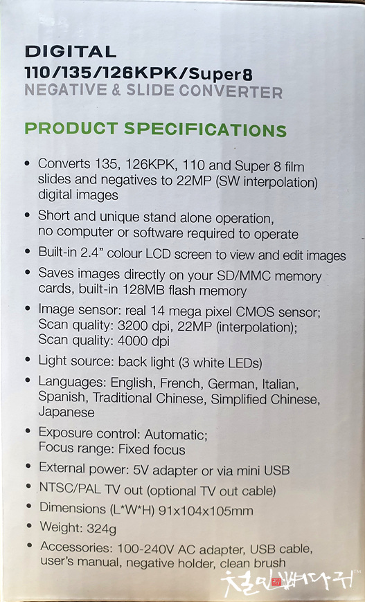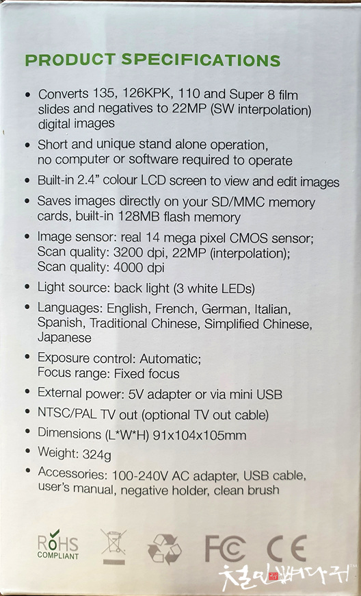 박스 겉면에 필름스캐너에 대한