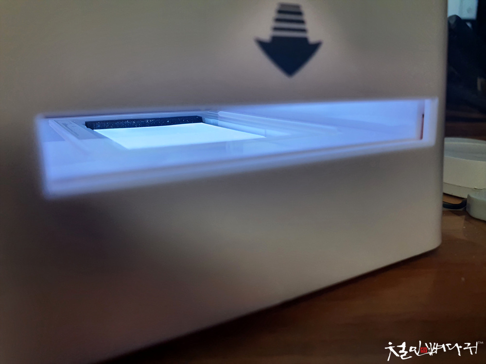 옆으로 필름을 밀어 넣어서 캡처를 할 수 있습니다.