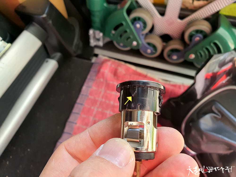 기어봉 바로 옆 부분에 구멍을 뚫으려고 합니다.