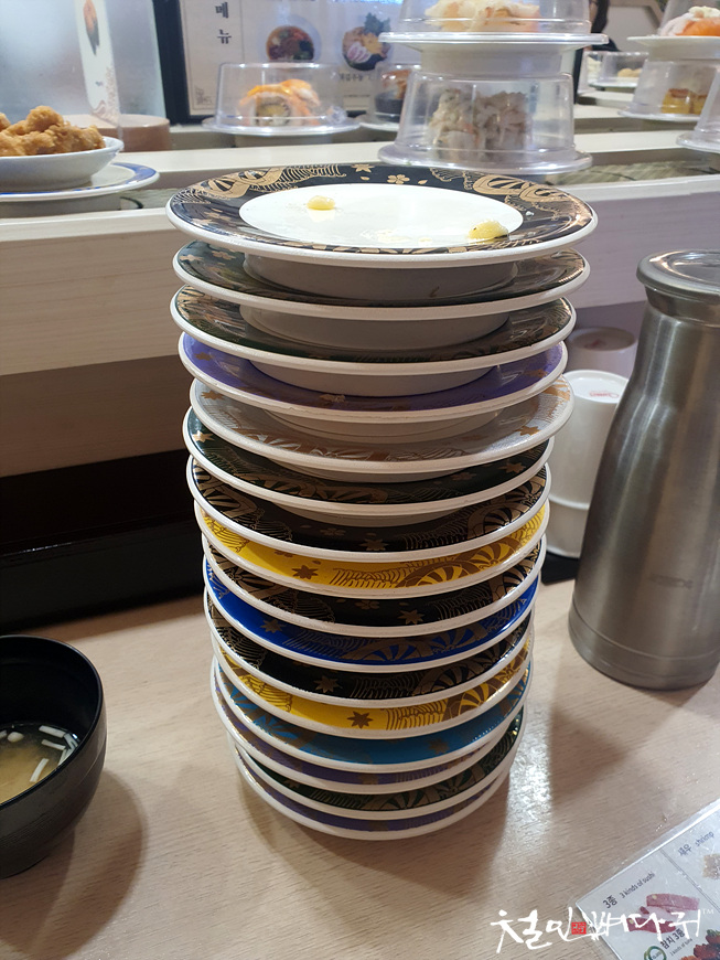 회전초밥에서 돌고 있는 접시 하나당