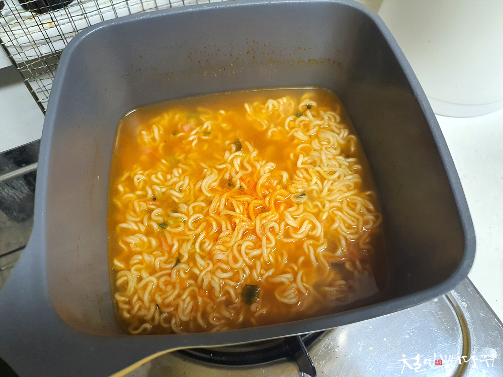 라면 물이 끓고, 2분 정도만 더 끓인 후