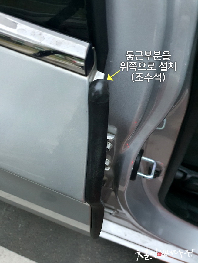 자동차 문의 철판을 물고 있는 형태로 고정이 됩니다.