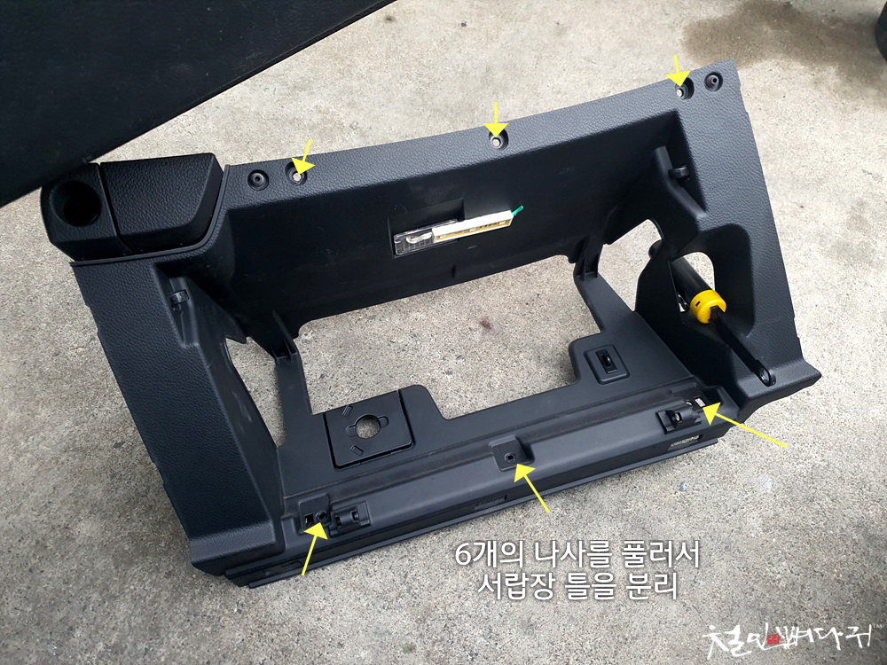 서랍장 테두리 부분을 나사 6개를 풀어서 뽑아주고,