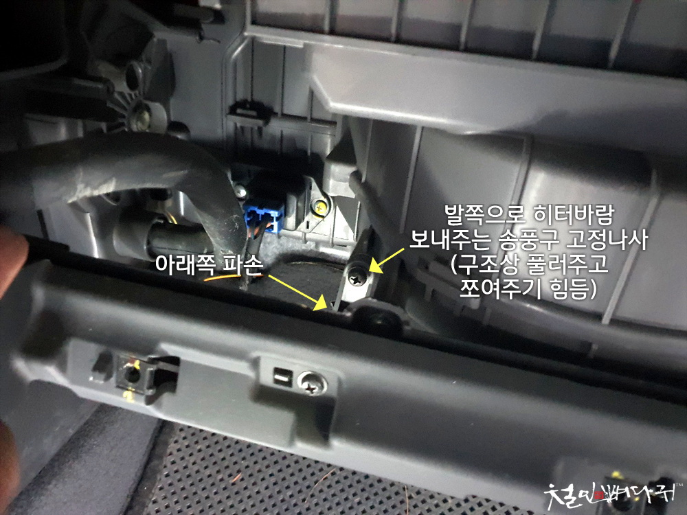 분리되고 에어컨 블로우 모터가 분리됩니다.