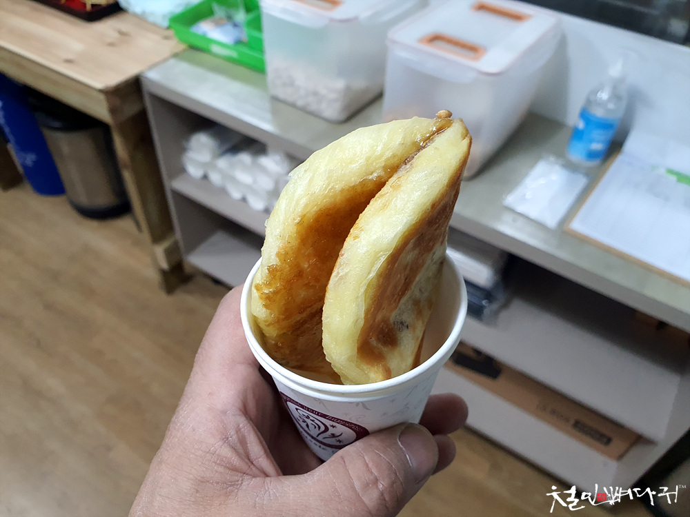 찹쌀씨앗호떡을 친구랑 각각 하나씩 구입했습니다.