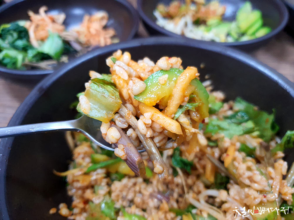 조금 기다리니 보리밥 한상 세팅이 됩니다.
