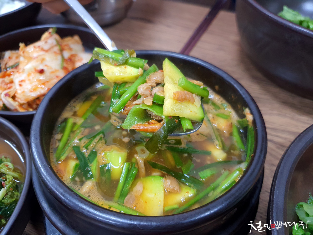 국물은 보리새우된장찌개도 있었고,