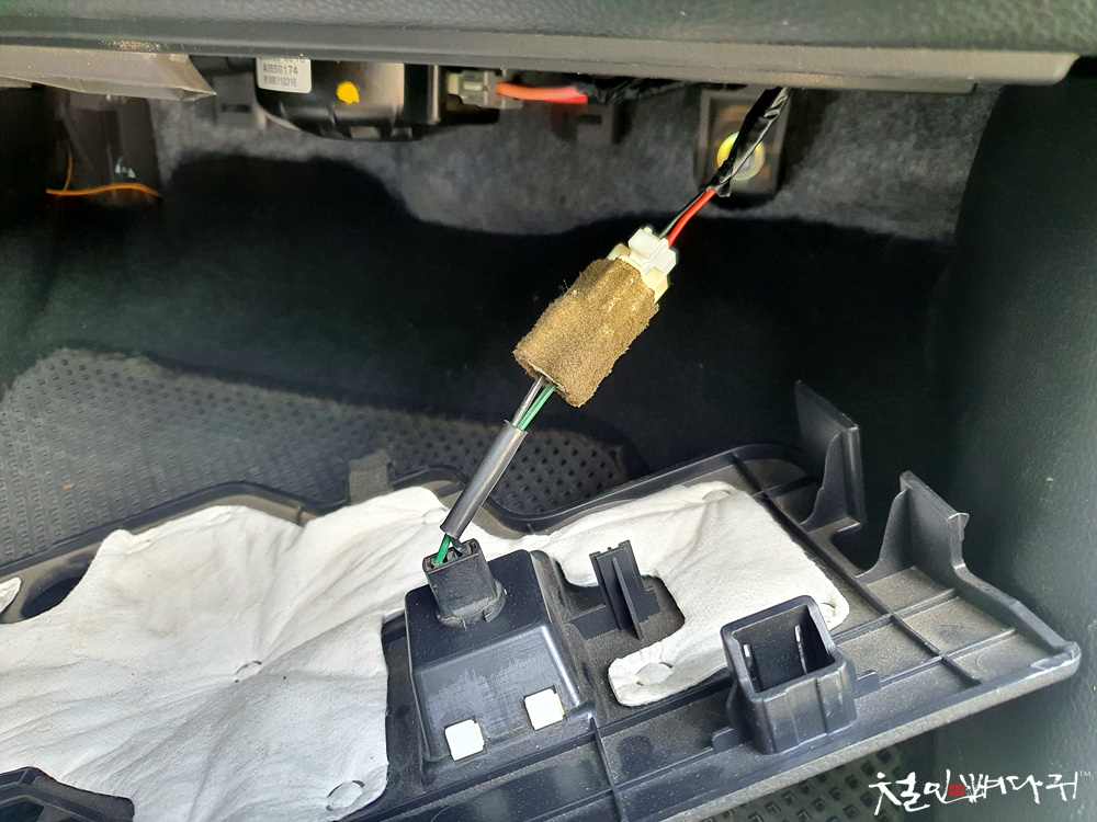 조수석 서랍 아래쪽을 뜯어서 확인하던 중,