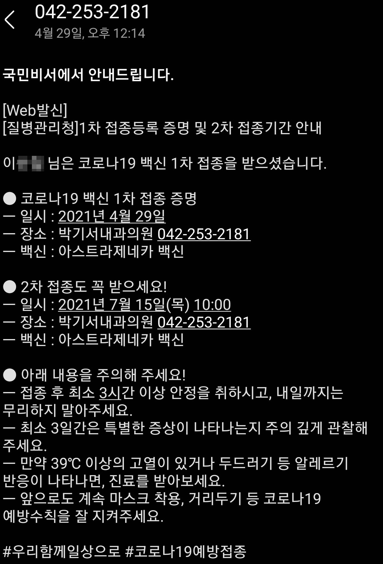 20210429 코로나19 백신 아스트라제네카 1차접종후의 이야기. 예방접종증명서 - https://blog.daum.net/chulinbone/9154<현재게시물>