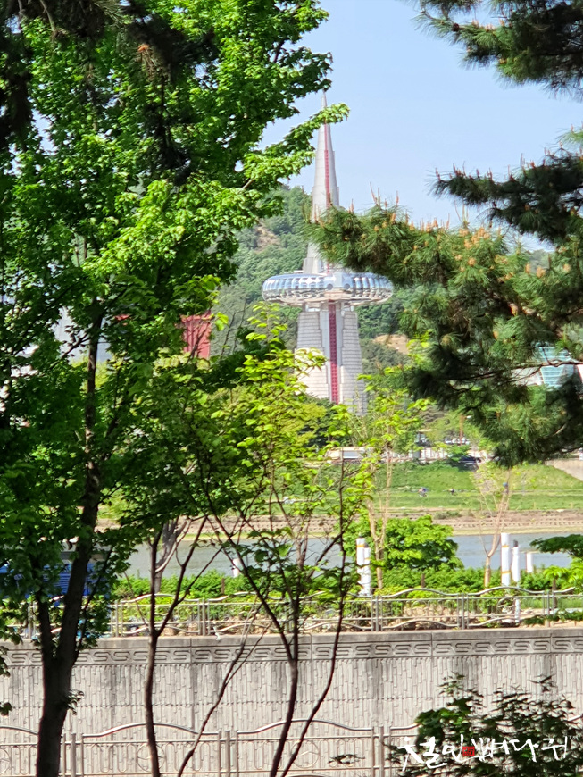 그늘막 있는 곳에서 멀리 보이는 구조물이