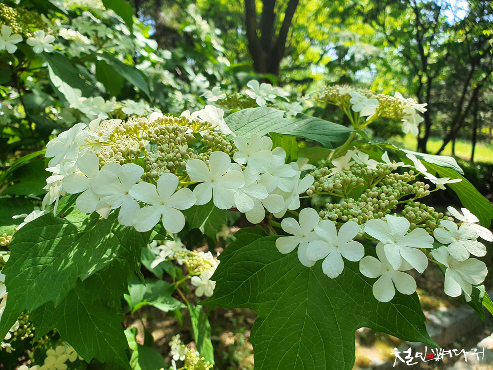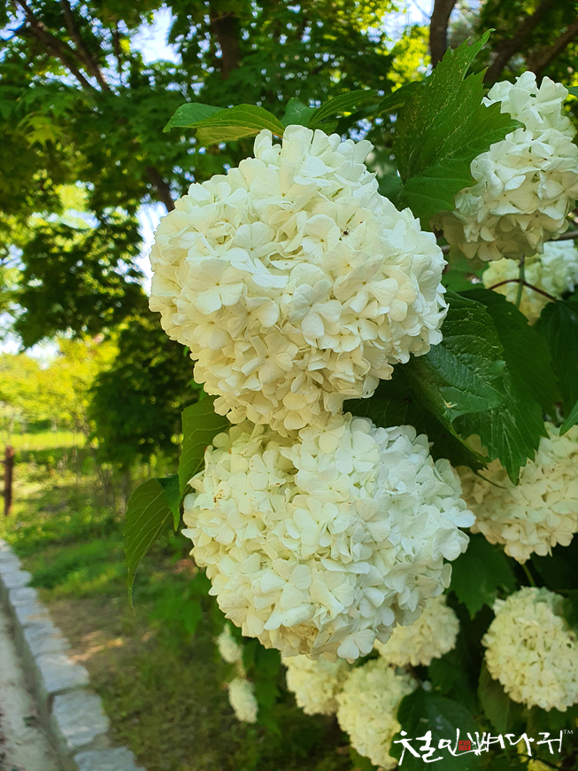커다랗게 피어있는 수국이 반겨주네요.