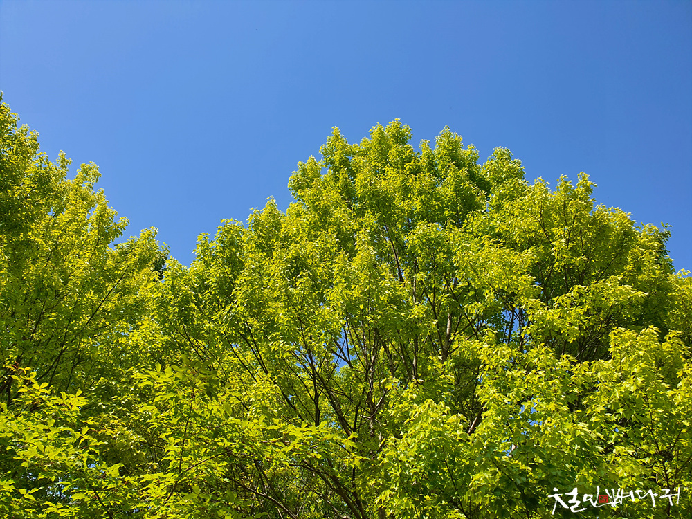 푸른 녹색과 파란 하늘의 조화는
