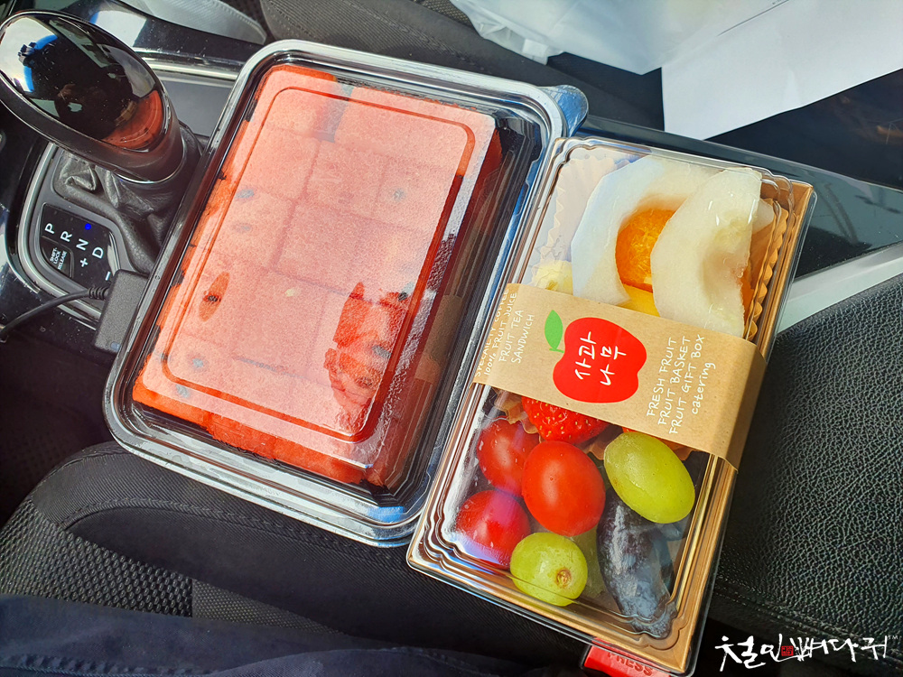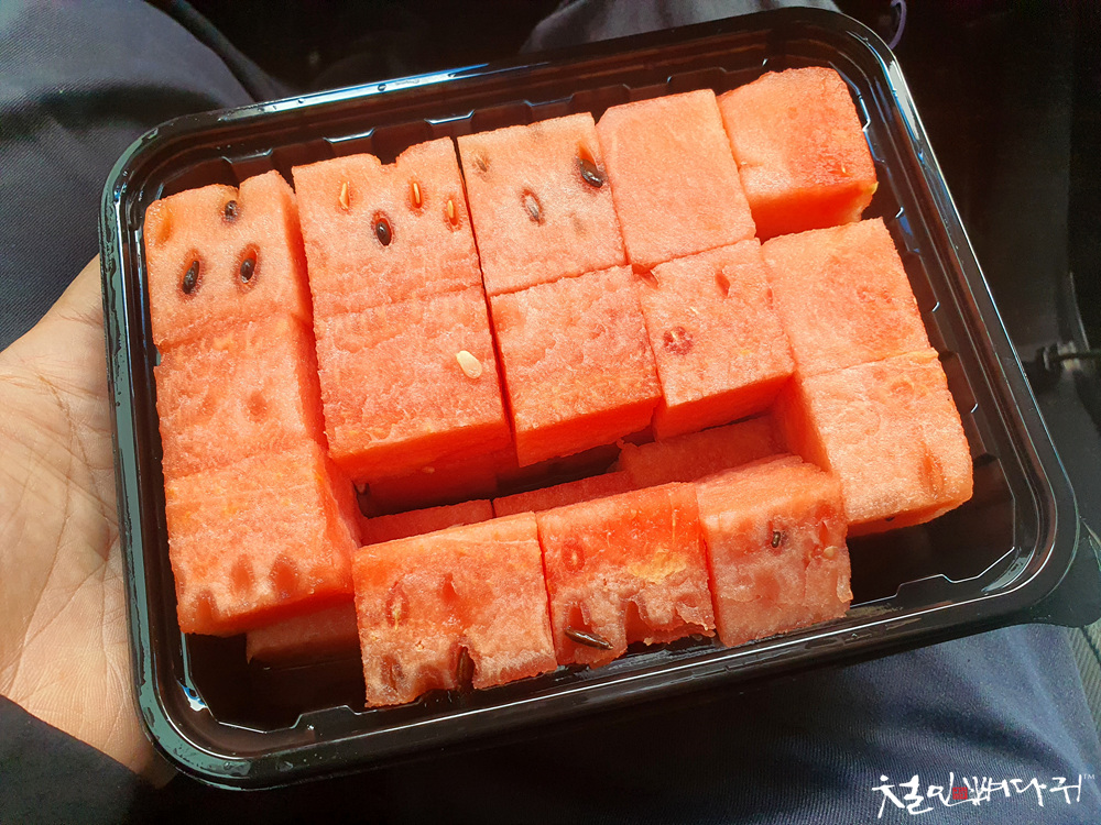 각으로 잘라서 담긴 수박도 선물로 받아서