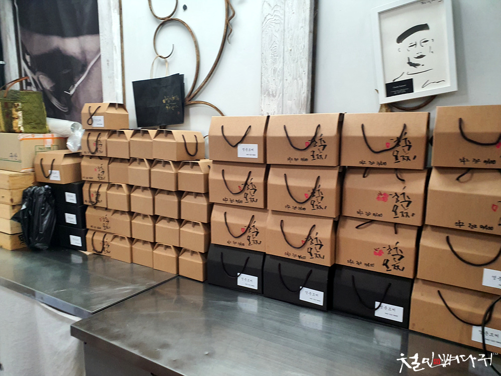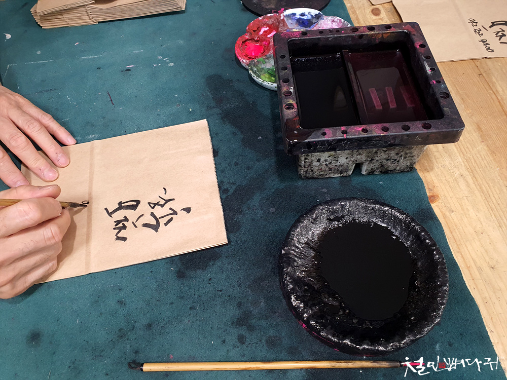 무지박스에 사장님이 캘리그라피를 했던 능력으로