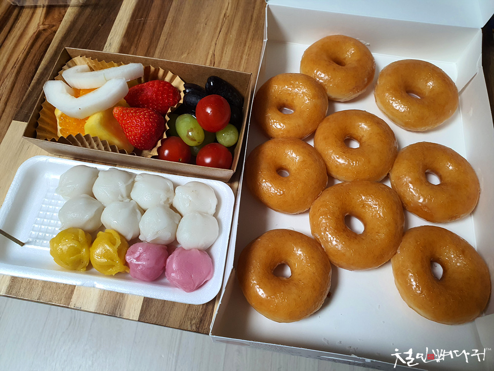 미니글레이즈드와 떡, 과일도시락, 우유를