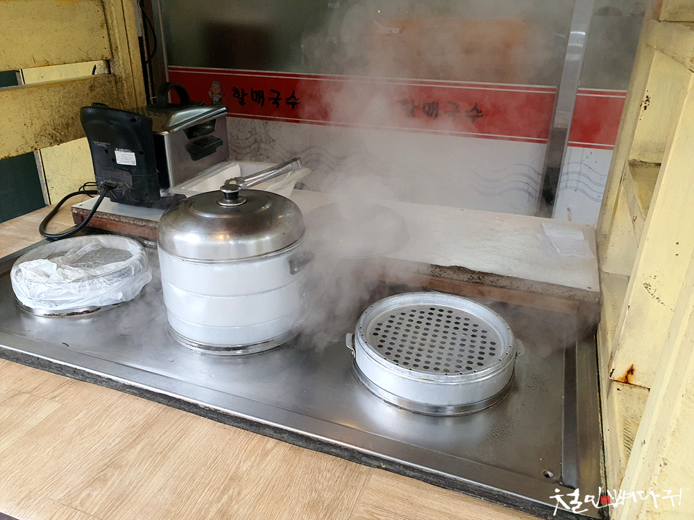 만두 주문이 들어가면 입구에 있는 찜통에서