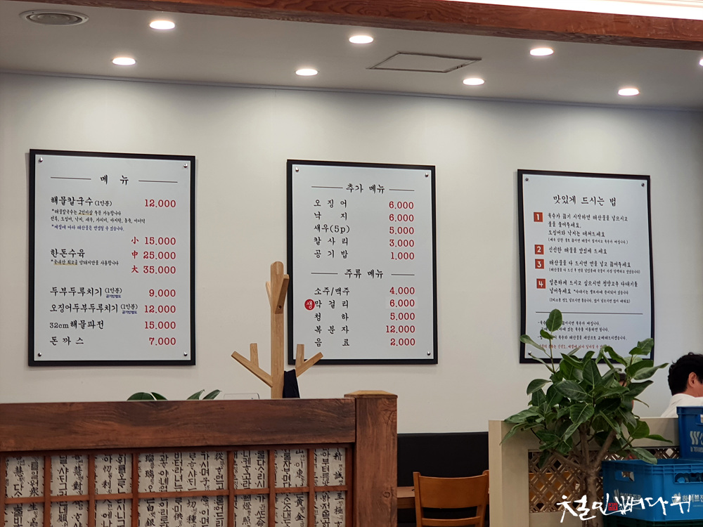 해물칼국수 외에 몇 가지 메뉴들이 더 있습니다.