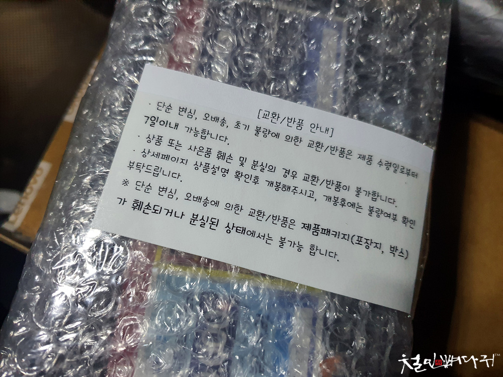 교환/반품 안내 쪽지가 하나 있습니다.