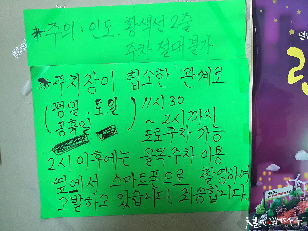 도마동 방향은 2선의 황색실선이라 주차단속이