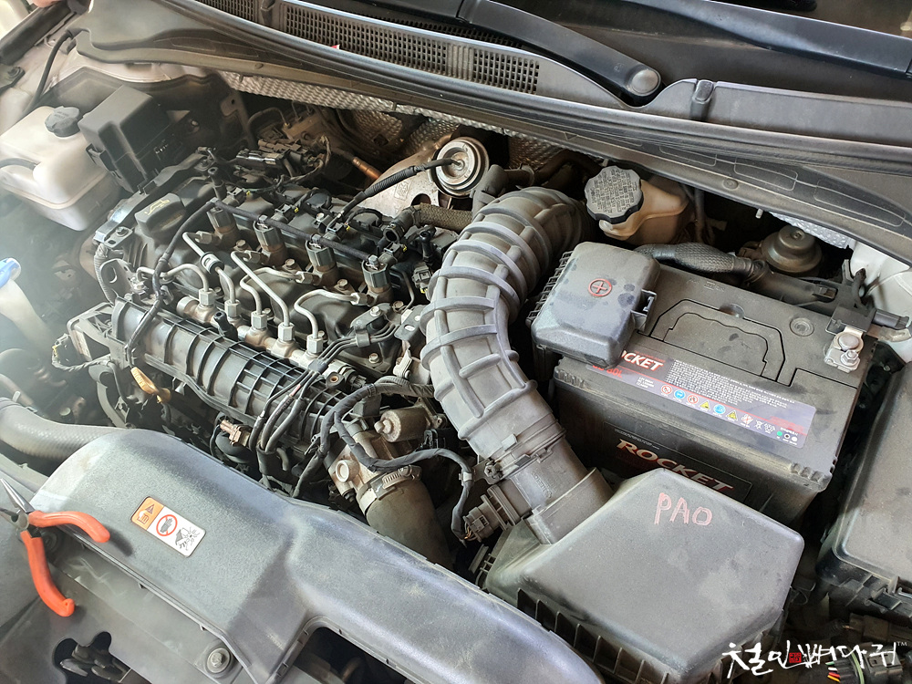 엔진룸 상단의 플라스틱 커버가