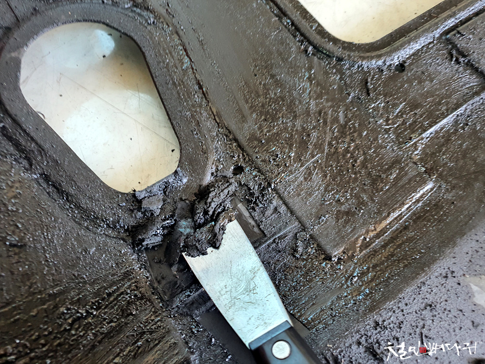 다 긁어내고, 걸레로 열심히 닦았습니다.