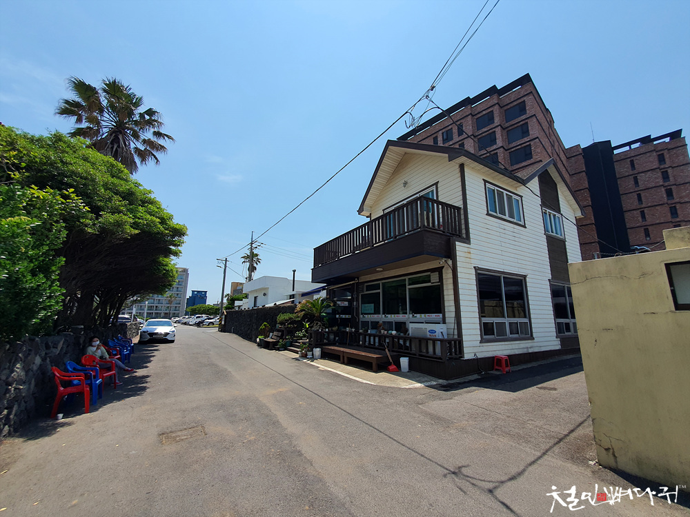 주변에 큰 호텔과 제주도 주택들이 있는데,