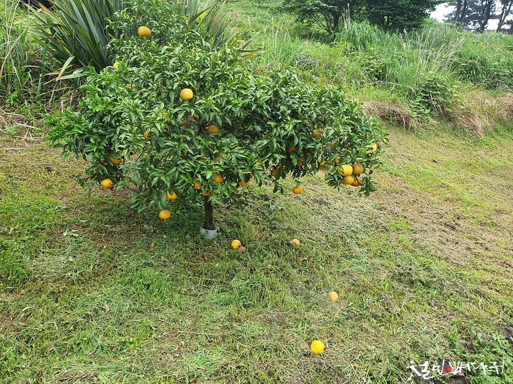 길가의 가로수가 과실수 인 하귤입니다.
