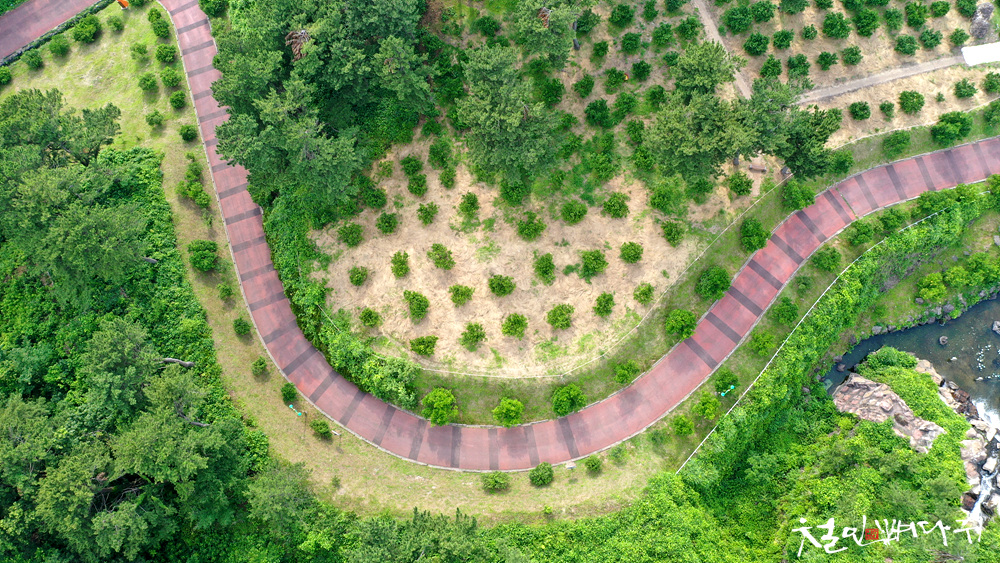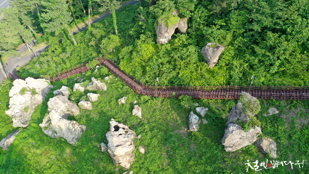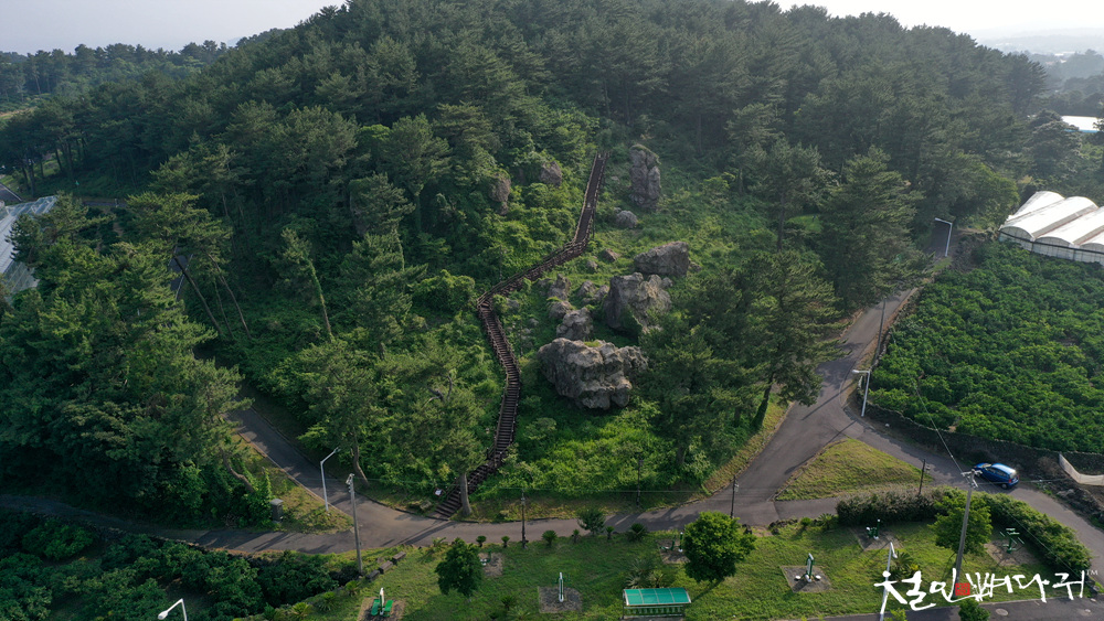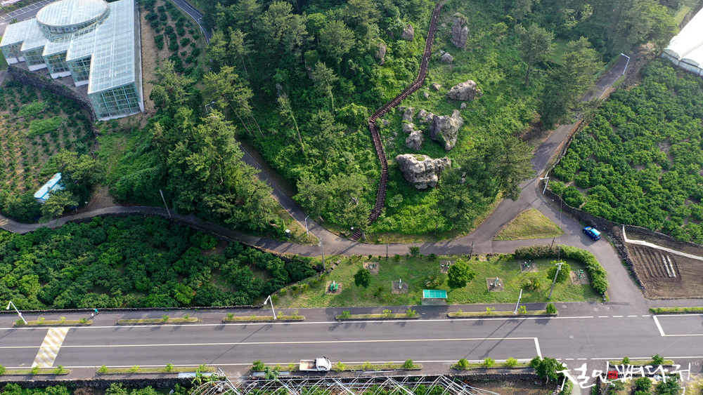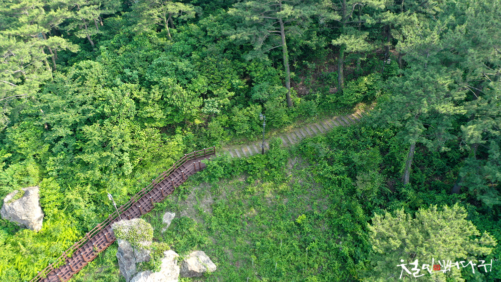드론으로 보니 한눈에 올라가는 계단이 보입니다.