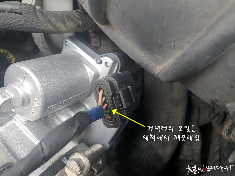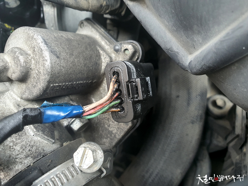 본넷을 열고, 스로틀바디에 연결된 커넥터를 보니