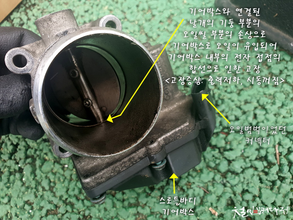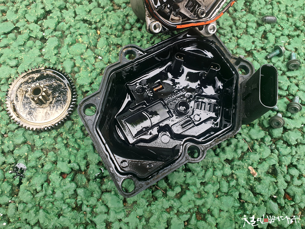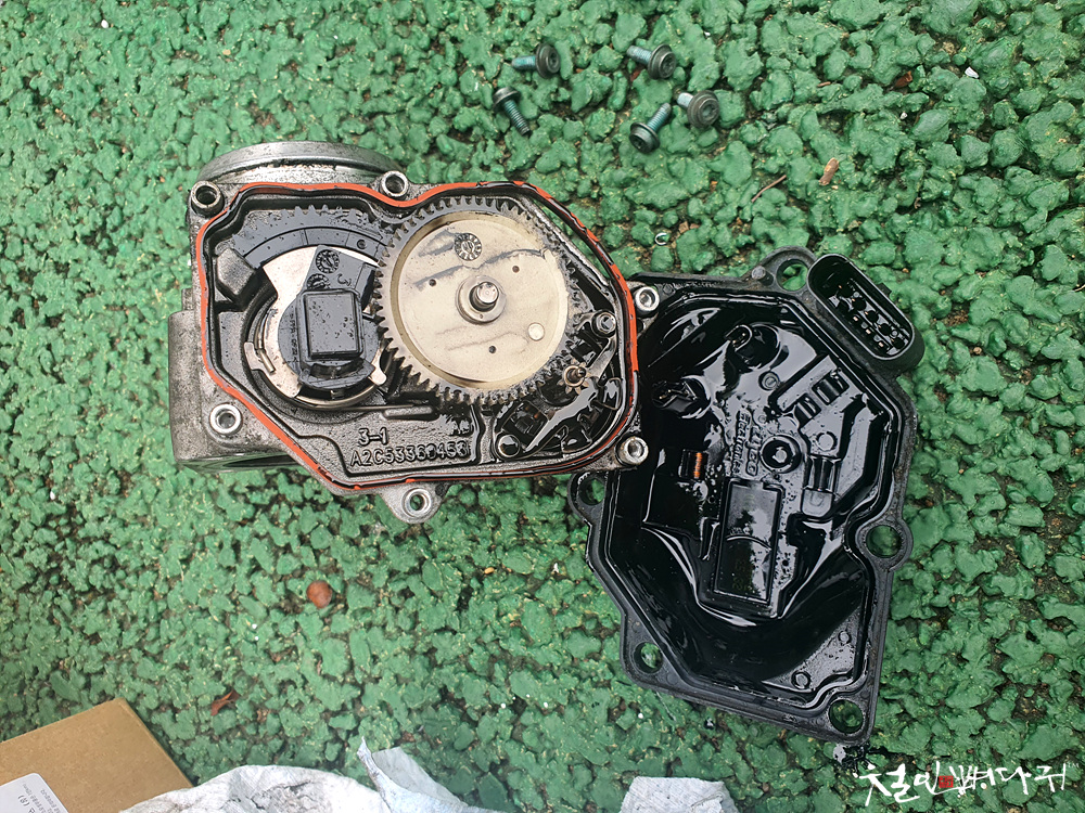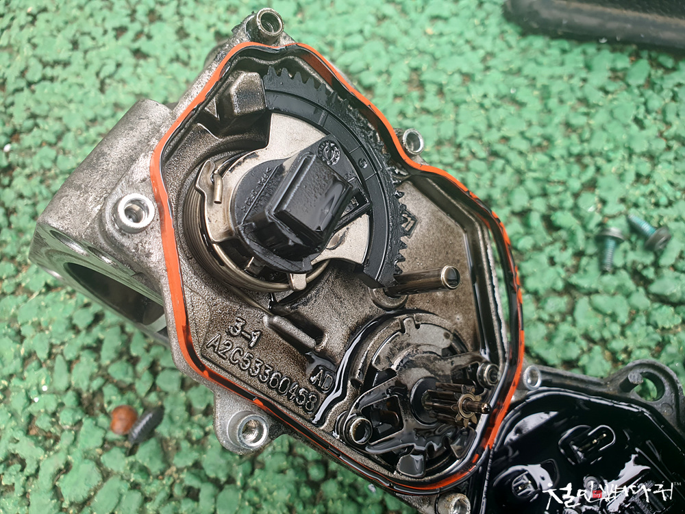 아래는 고장 난 스로틀바디의 기어박스 부분을