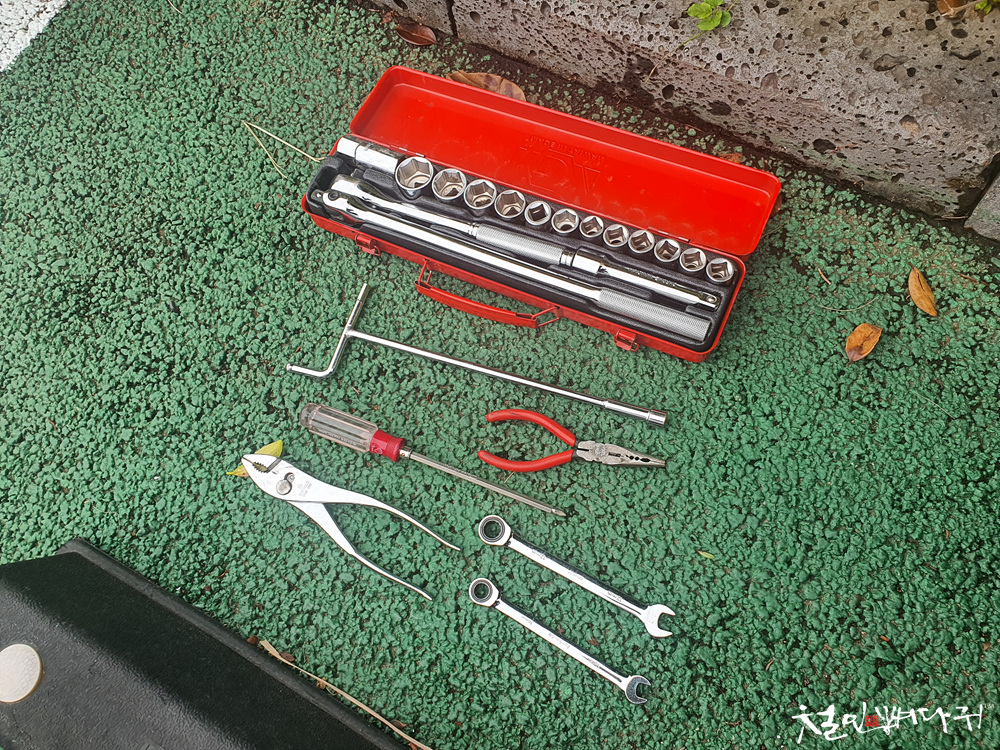 고정되어 있는데, 복스알10mm로 풀러줍니다.