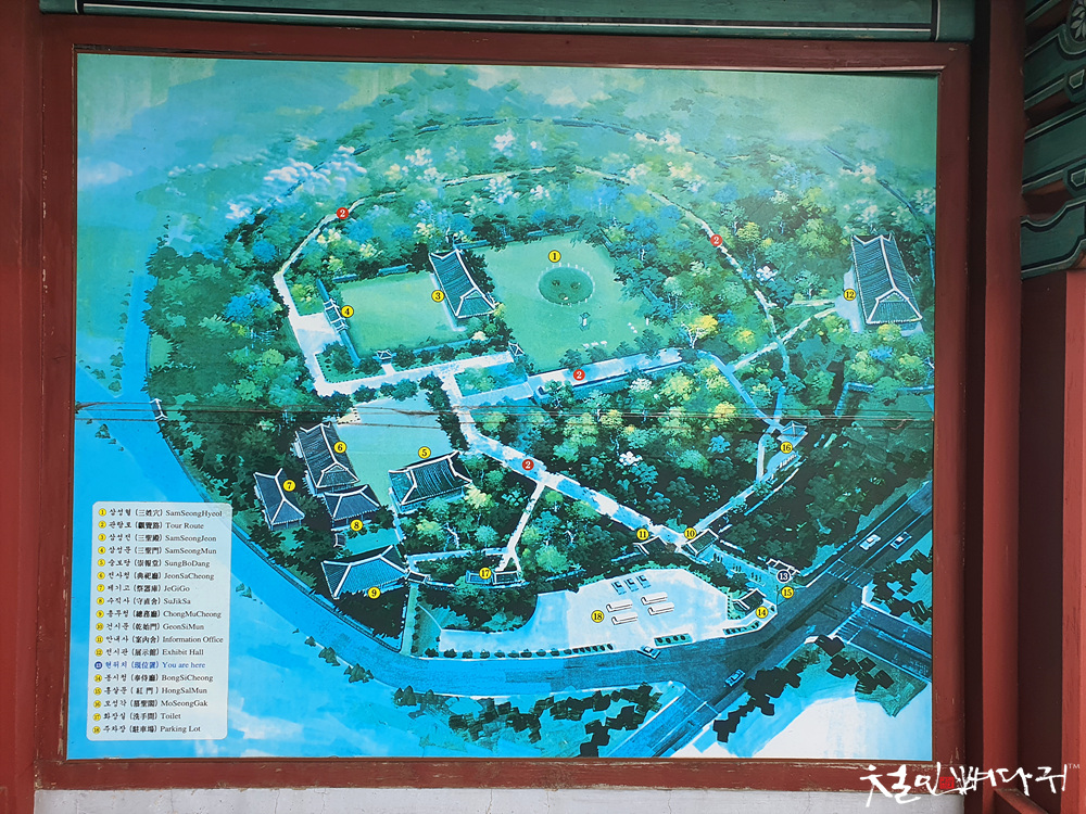 한바퀴 돌아서 중앙의 삼성혈 자리로