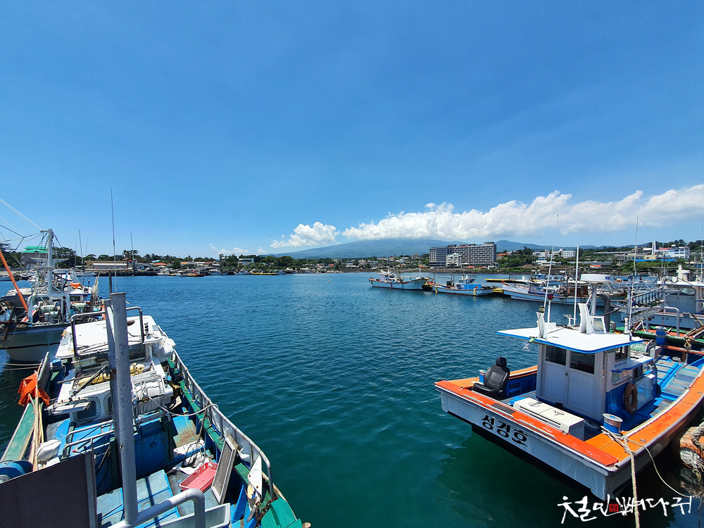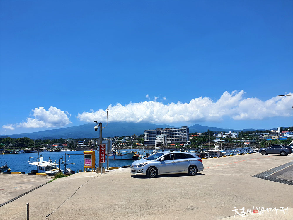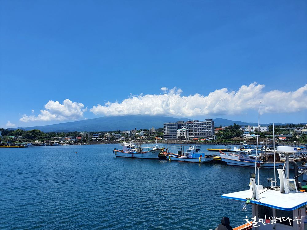 멀리 한라산이 보이는 배경의