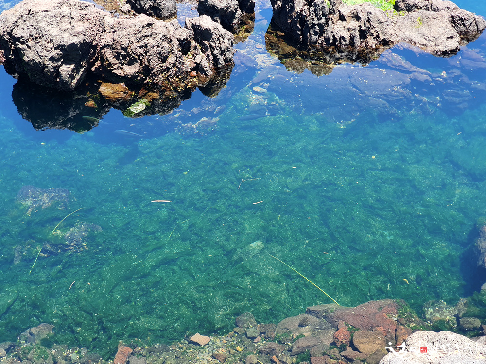 맑은 물이 고여있고, 커다란 물고기들도