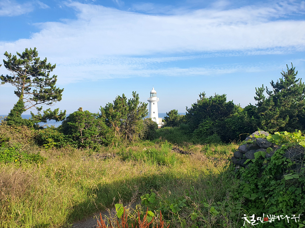 걸어 절벽쪽으로 가면, 홀로 서있는 하얀등대.