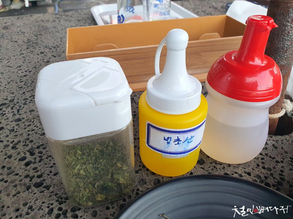식초와 빙초산이 준비되어 있고,