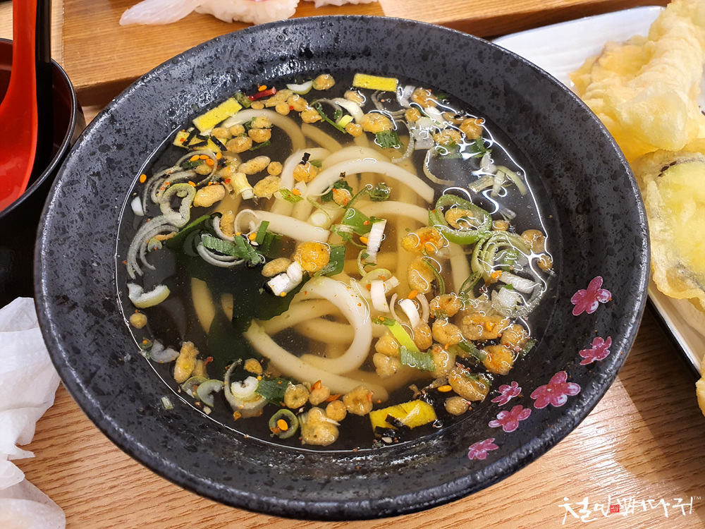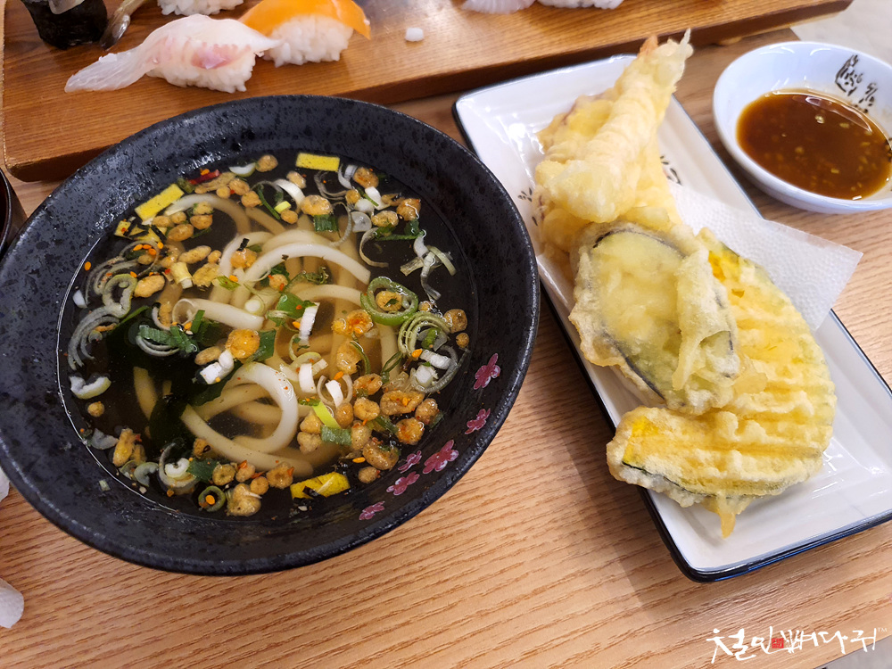 죽, 초밥12개, 미니우동, 샐러드, 튀김, 장국