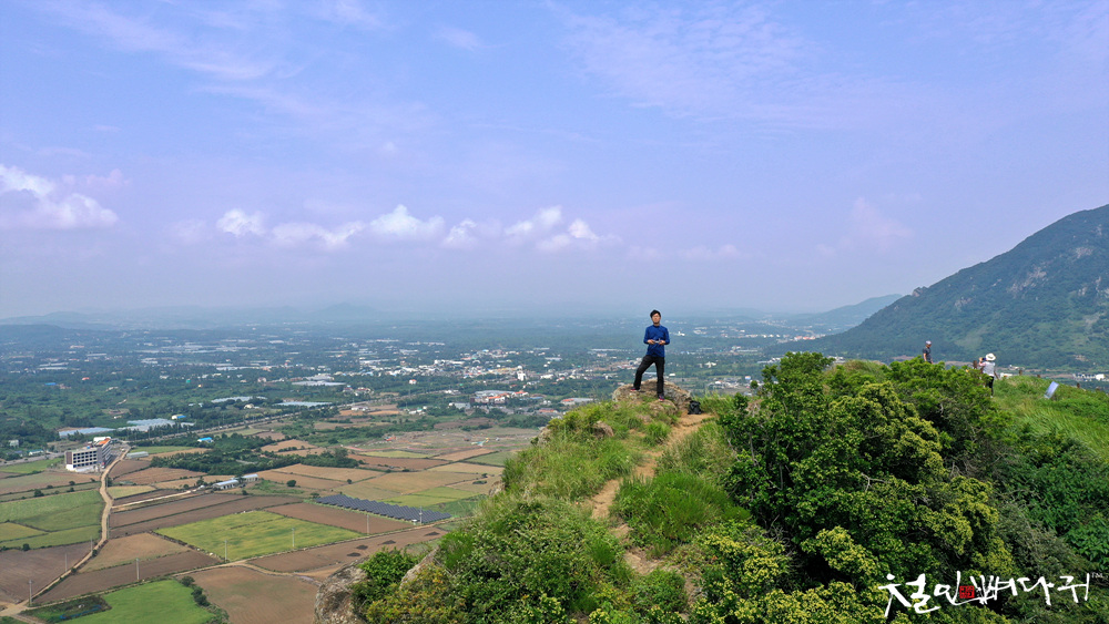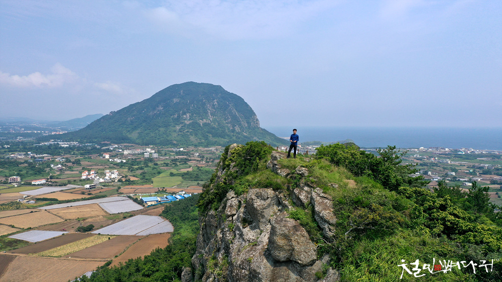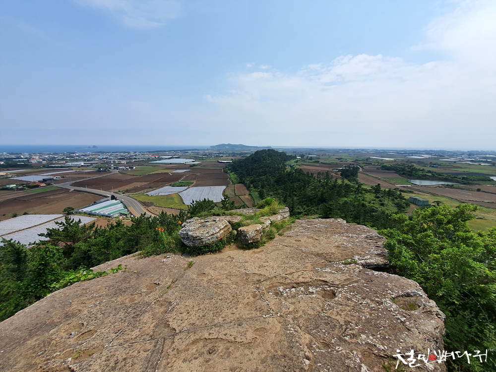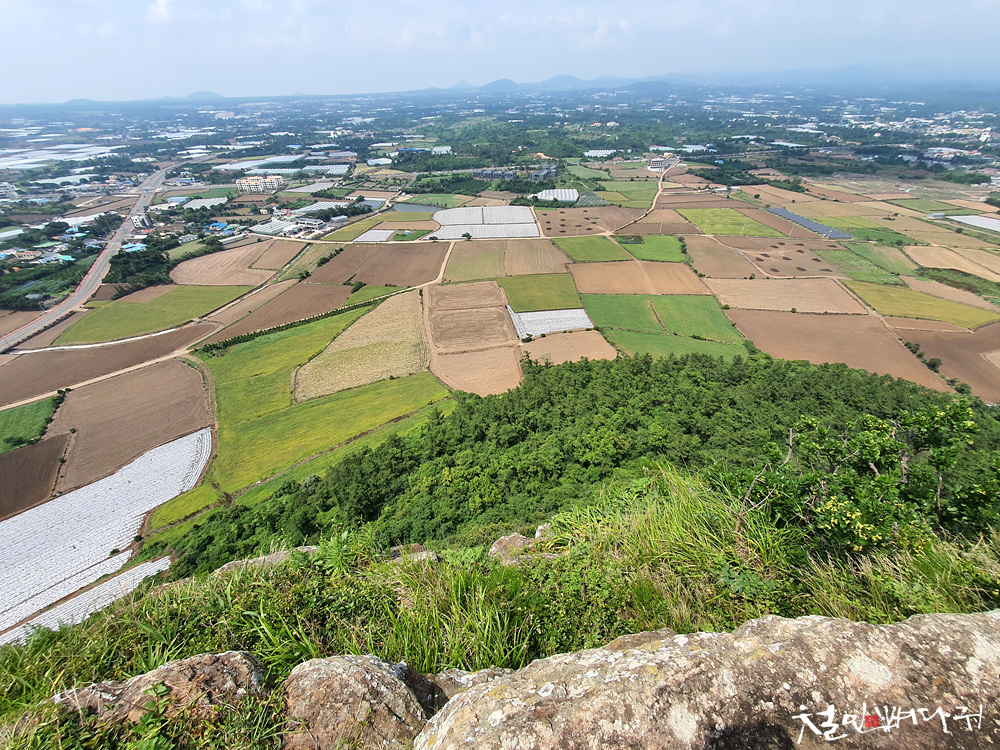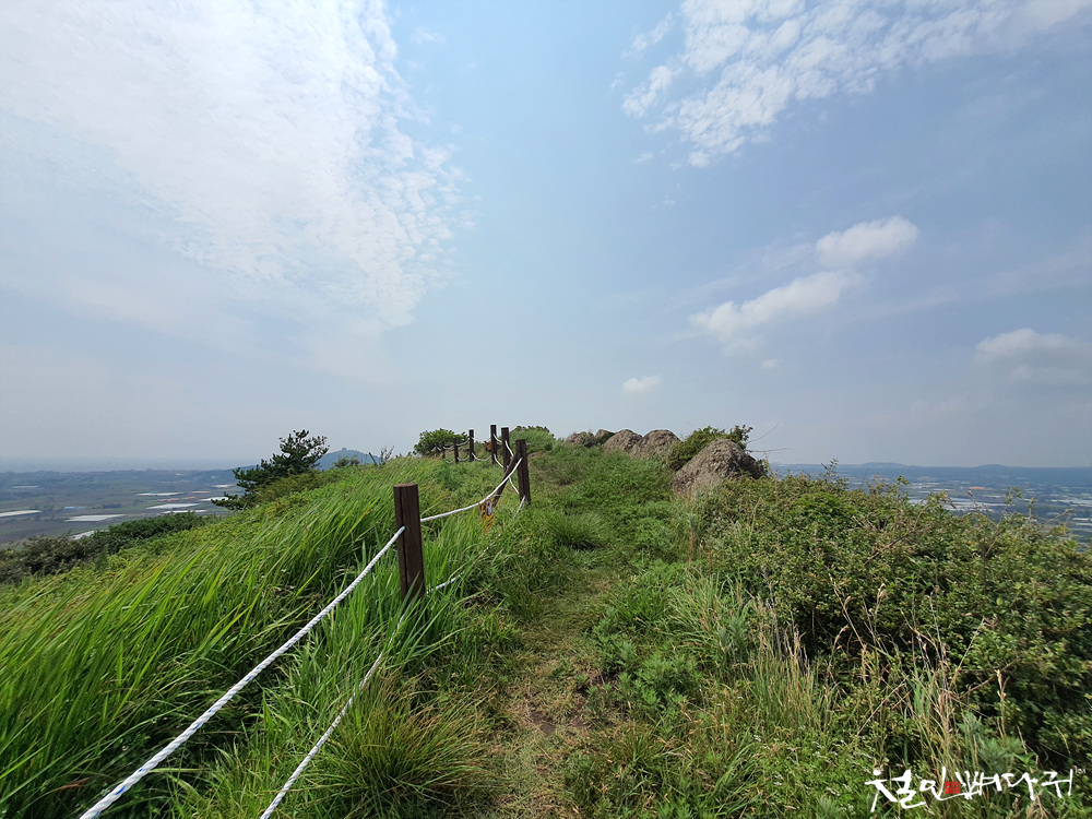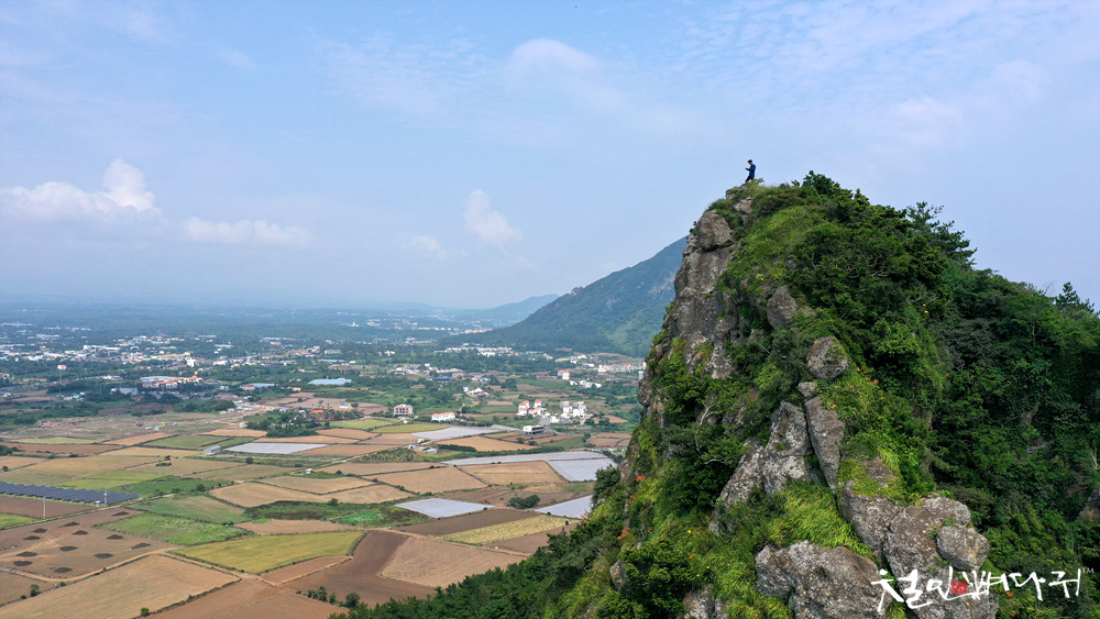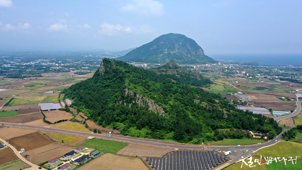 넓은 평야지대에 홀로 서있는 오름입니다.
